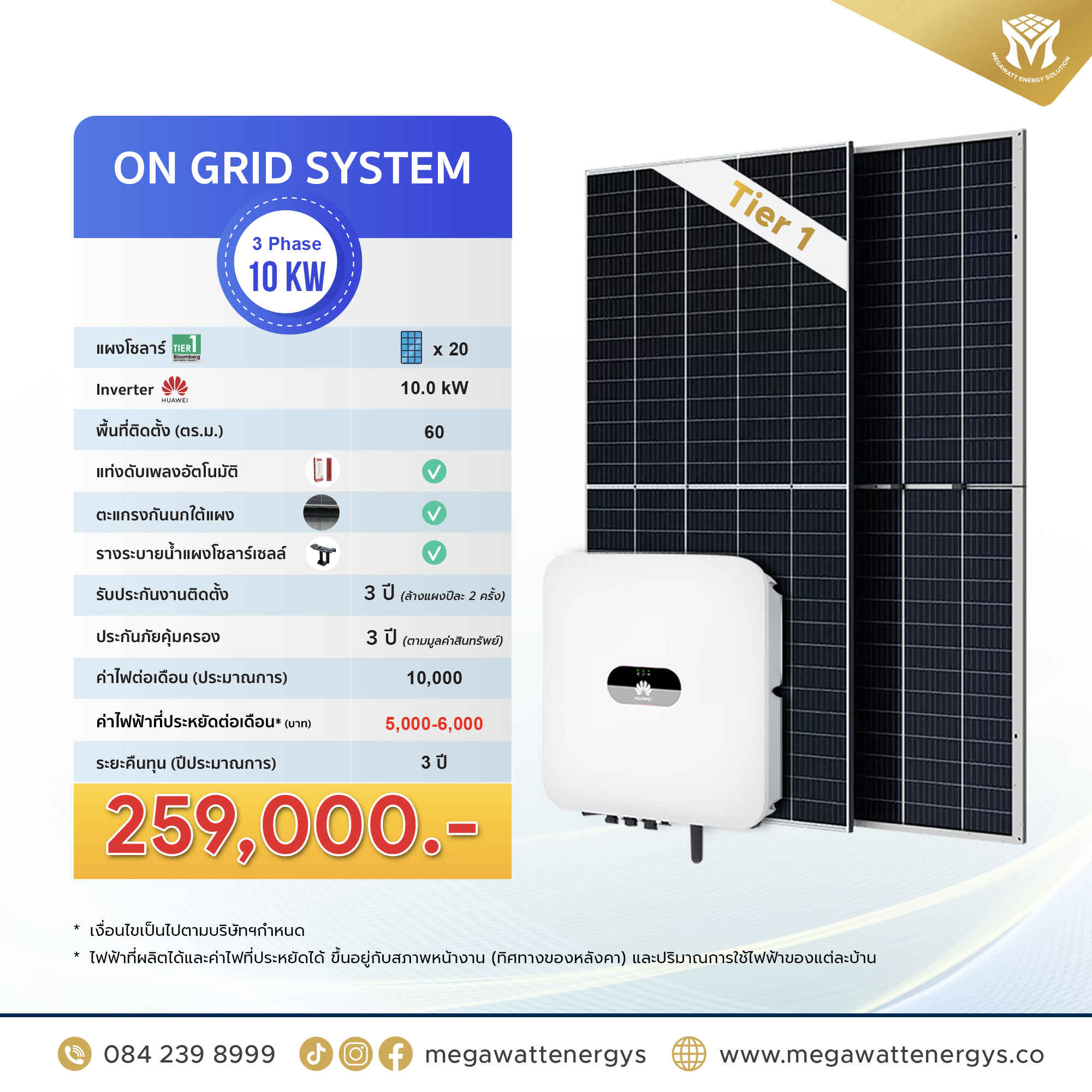 ระยะเวลาการรับประกันกําลังไฟฟ้า 30 ปี